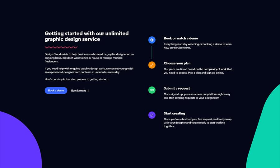 Design Cloud offers comprehensive unlimited graphic design services at a flat rate that’s perfect for larger businesses. They’re a team of UK-based graphic designers who offer assets for ongoing design work that you can scale up or down to meet your needs.