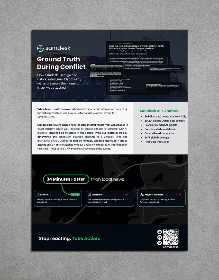 ● 40% faster turnaround time for campaign-ready materials, ensuring Samdesk remains ahead in the fast-moving world of crisis monitoring.