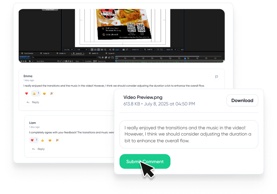 Your creative team works with you until every detail feels just right and now, giving feedback is easier than ever. Record your screen to share clear video feedback, or tag specific changes directly on your video projects through our partnership with Frame.io. Whether it’s a small tweak or a major rework, we’ll refine your project so it aligns perfectly with your vision, brand, and goals.