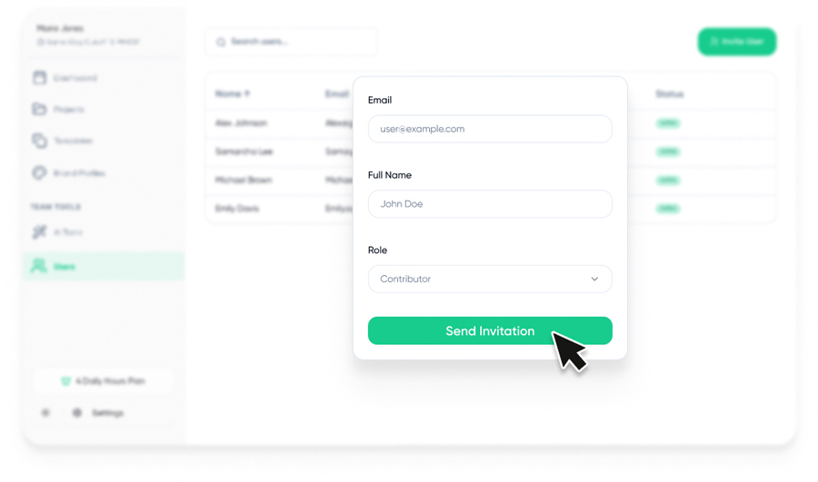 The primary user can easily allow their employees, or team members to create, revise and finalize projects. These settings can be changed as needed.