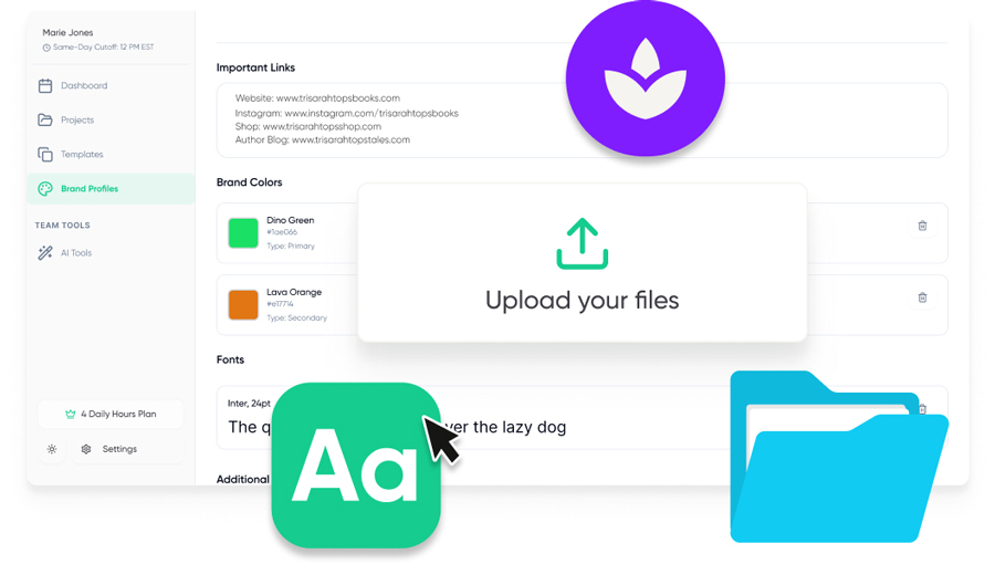 Upload brand guides and other important brand assets to a Brand Profile once, and you’ll never have to again, they attach right to any project brief.