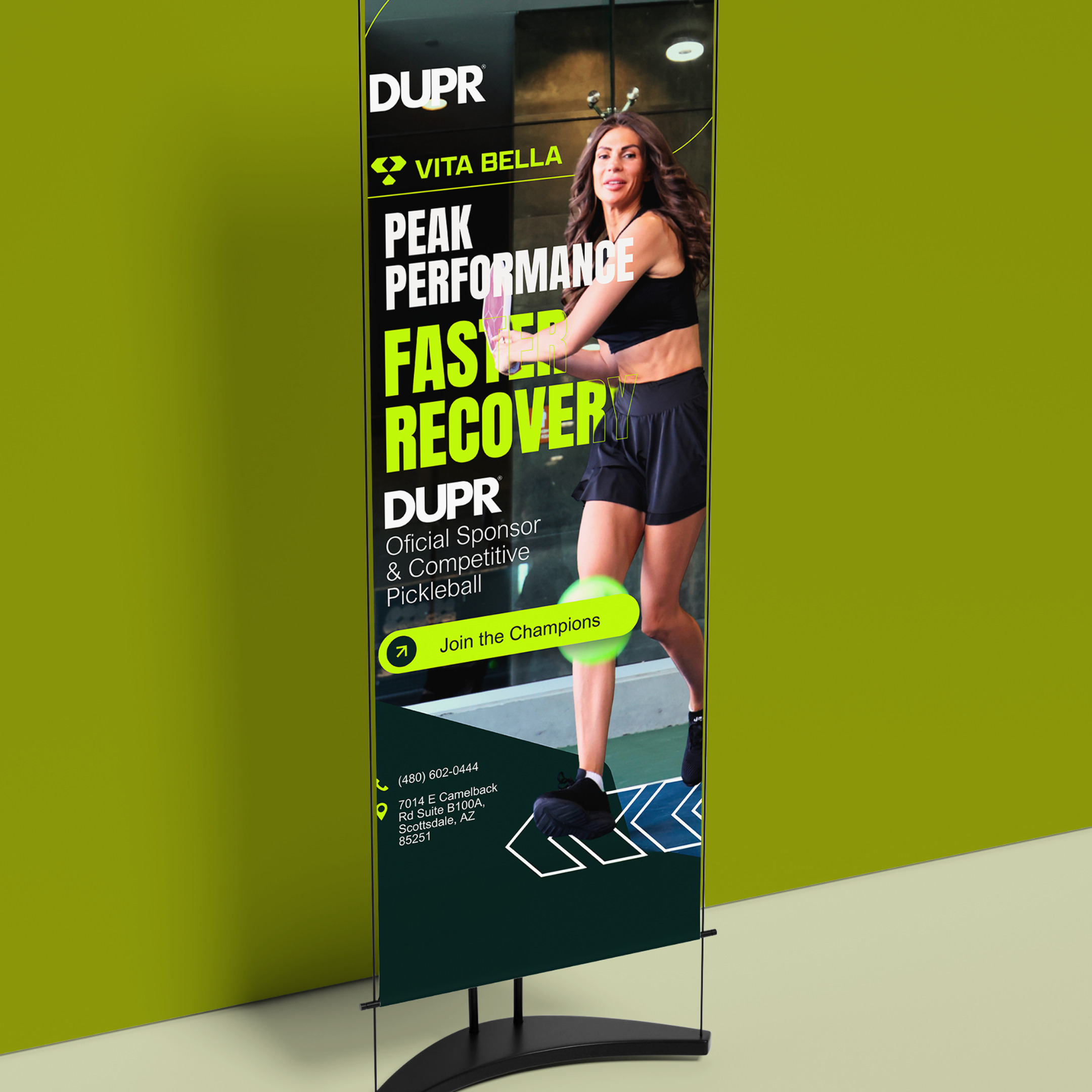Booth graphics, retractable banners, and large-format displays that attract visitors. Designed to compete for attention on busy show floors.
