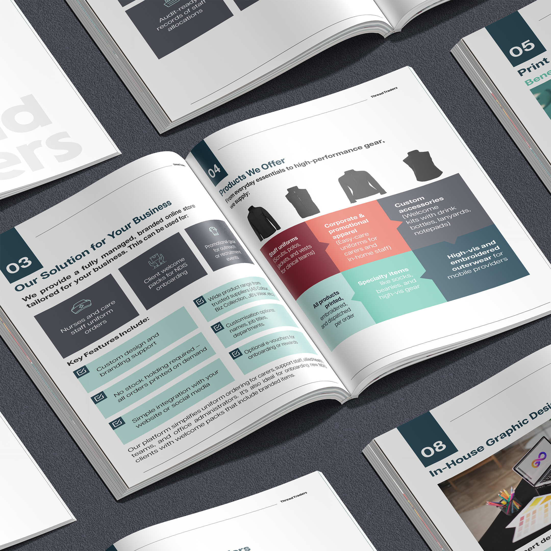 Professional materials that extend your brand into the physical world. Your team creates designs that look sharp on paper and drive real-world results across every application, from event signage to product catalogs.