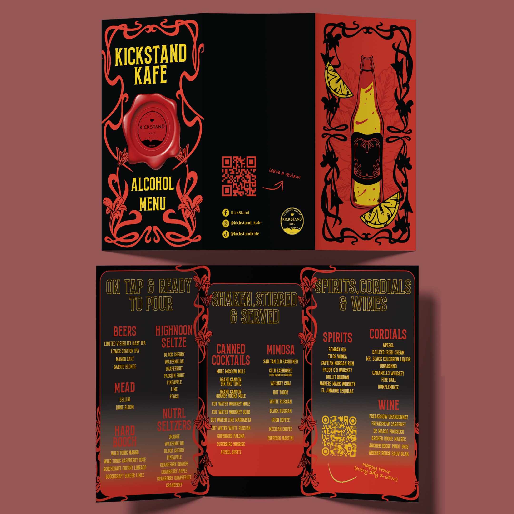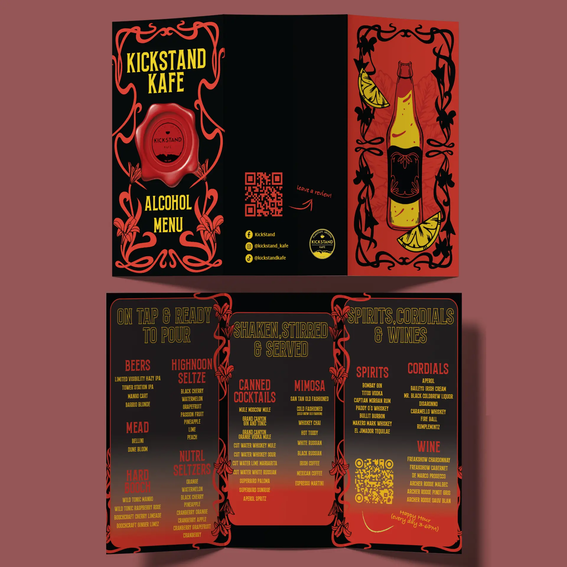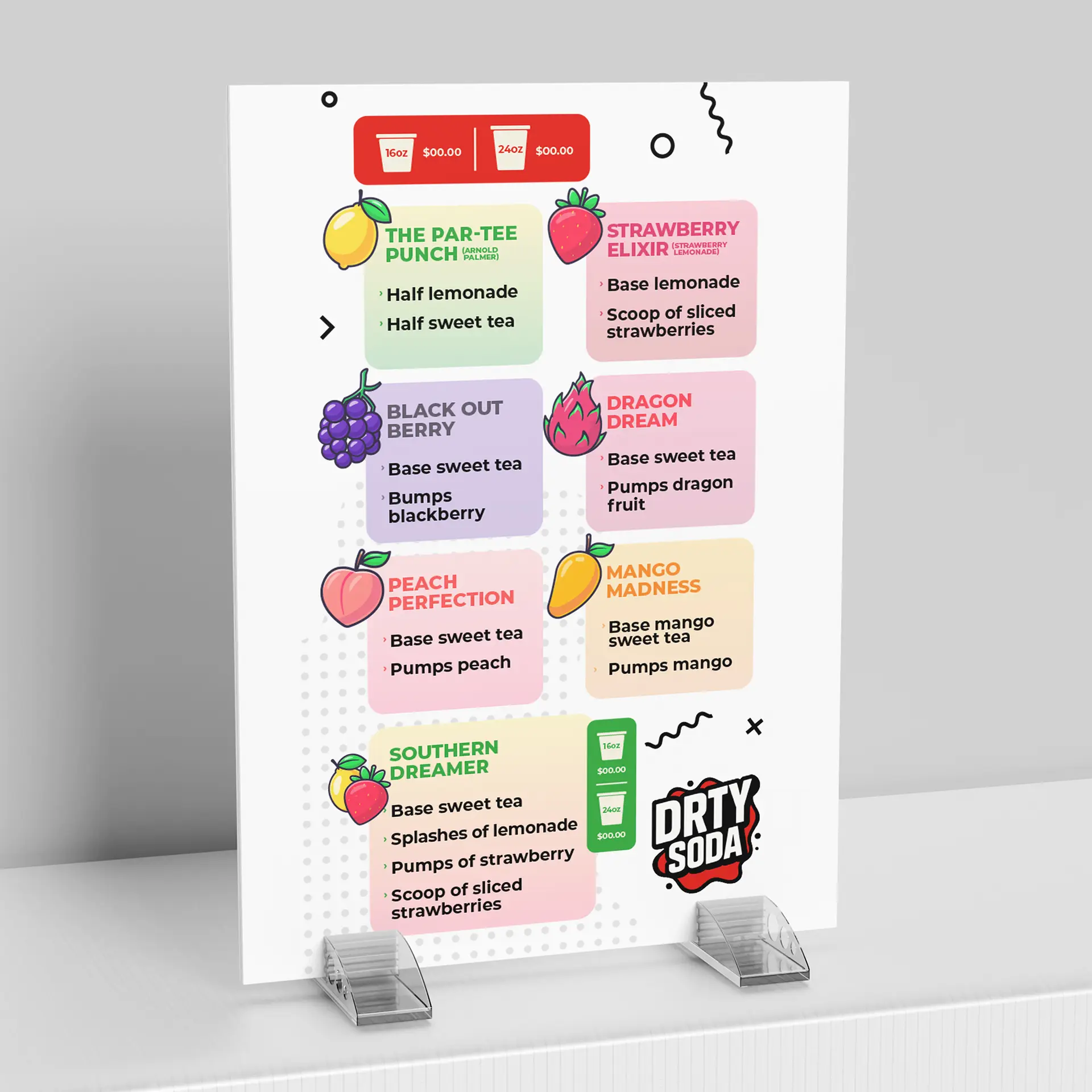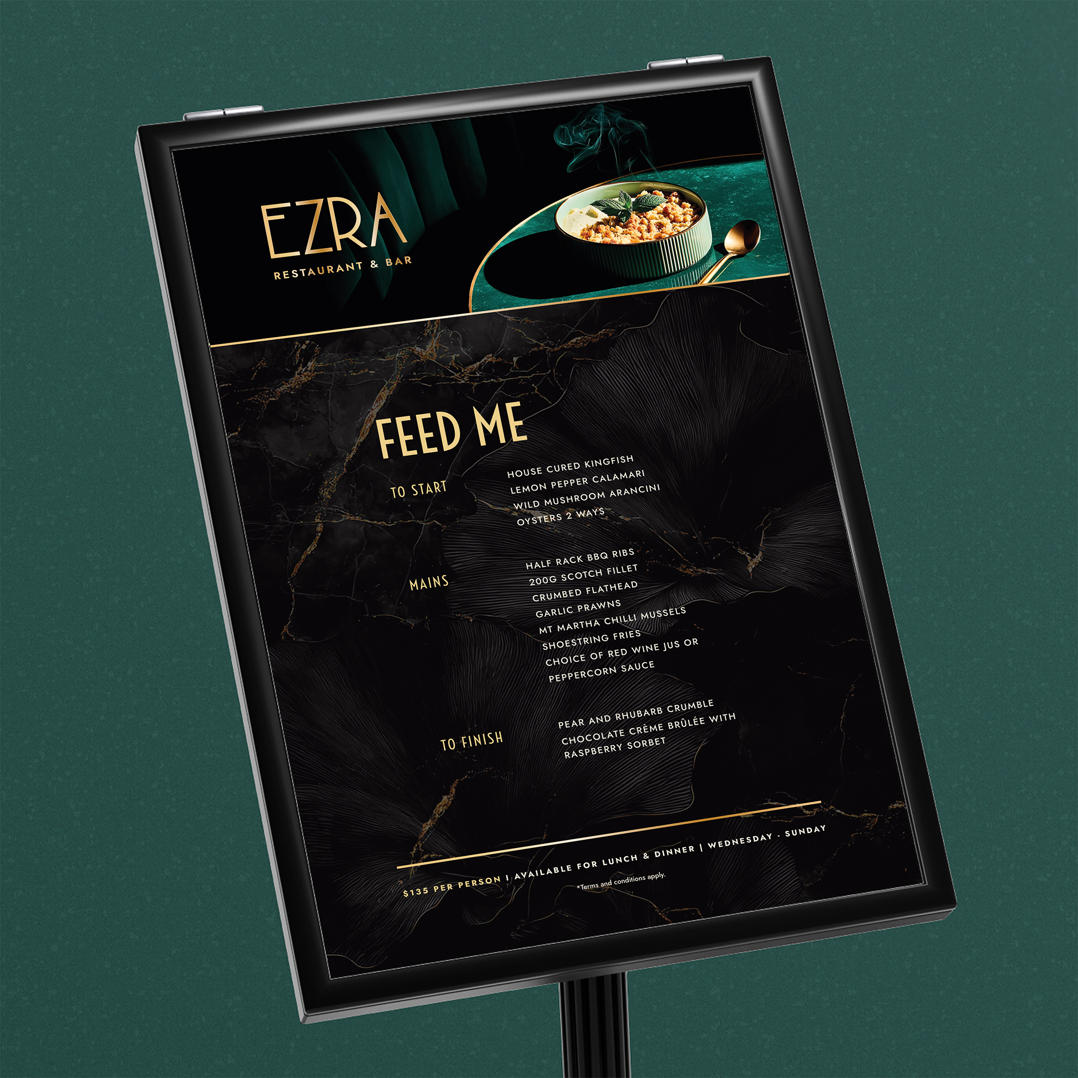 Restaurant menus, service lists, and pricing guides designed for readability and appetite appeal. Layouts that help customers
