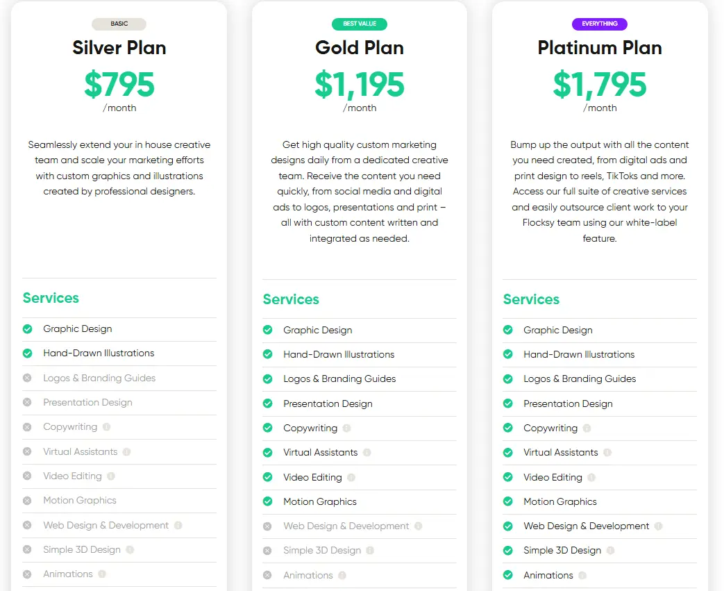 Design Pickle is a solid choice if your needs are limited to graphic design and light motion graphics. However, if you want a comprehensive creative subscription that includes design, video, copywriting, marketing materials, and more, Flocksy is the stronger option.
