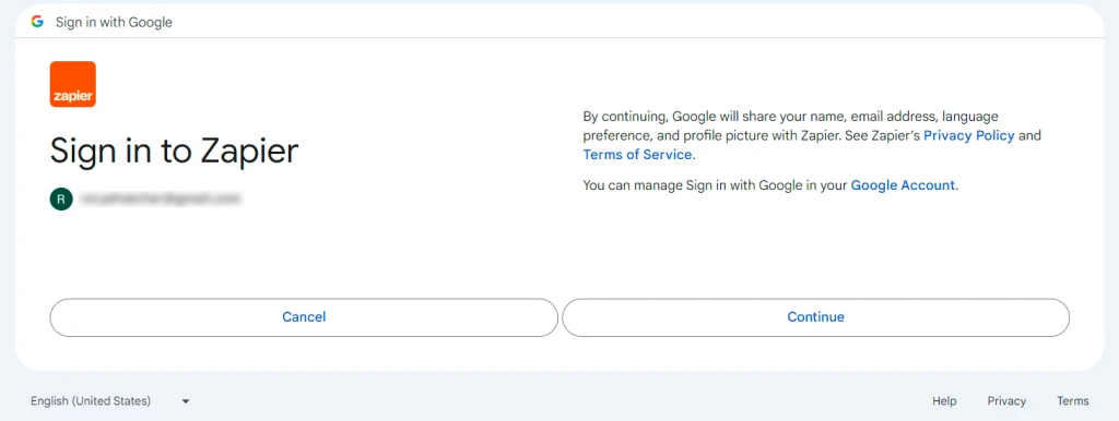 2. Use your email or Google account to start a Zapier account.