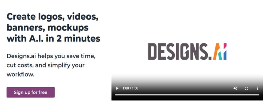 Designs.ai claims that their custom DesignMaker and LogoMaker tools are able to generate ads, logos, vectors, banners, flyers, graphics, and more in as little as two minutes.