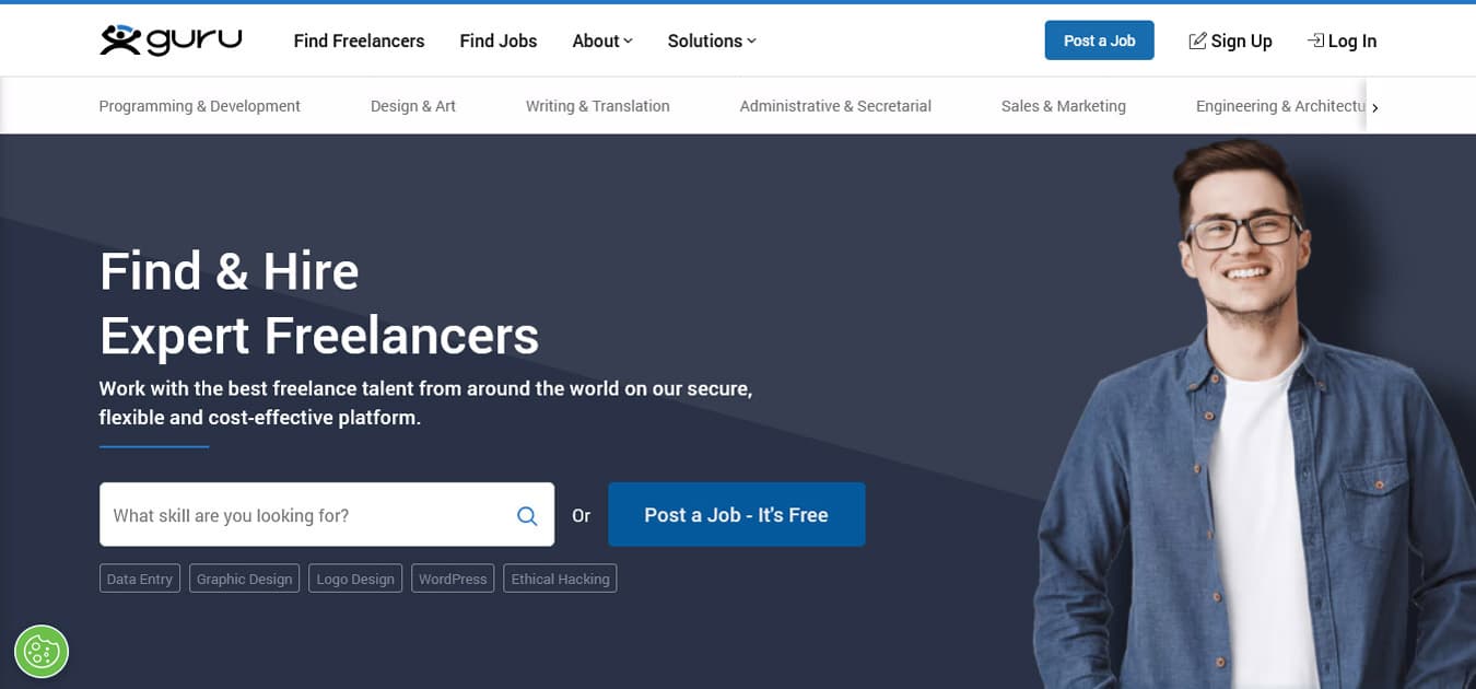 If you need something like a website redesign, a blog article, or even ongoing administrative services and don’t want to go through the work of hiring an in-house team (or you simply can’t afford one), Guru can be a very affordable option.