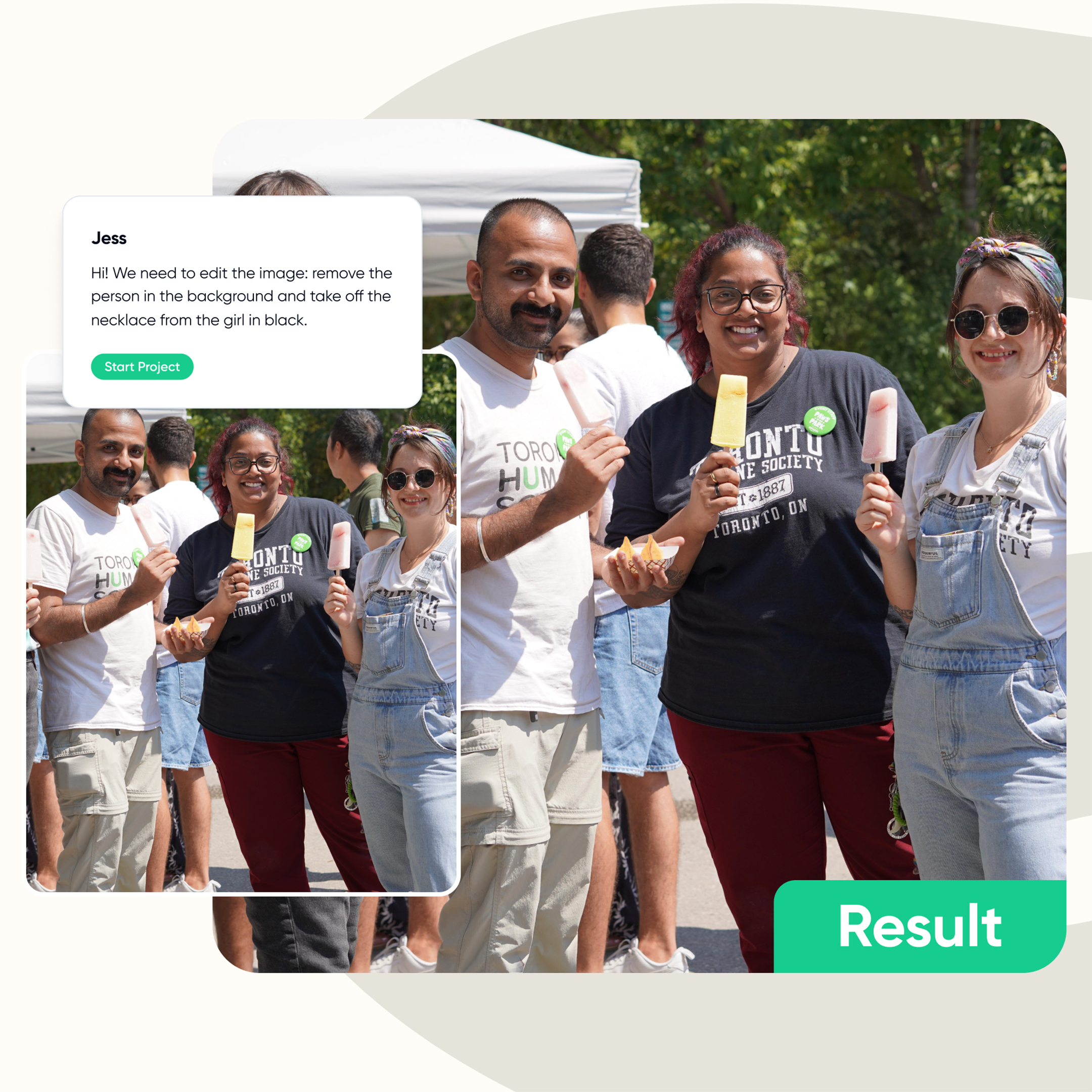 Retouching, color correction, and background removal for product images, team photos, and marketing assets that need to look professional.
